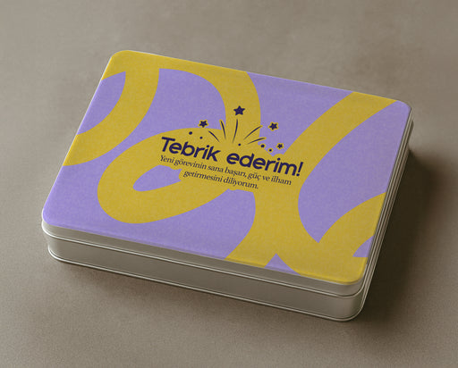 İş Tebrik Temalı Baskılı Dikdörtgen Metal Kutu – 14 cm x 24 cm x 4 cm