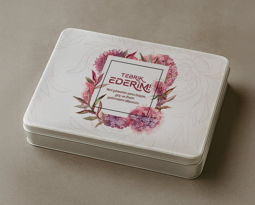 İş Tebrik Temalı Baskılı Dikdörtgen Metal Kutu – 14 cm x 24 cm x 4 cm Kurumsal tebriklerinizi prestijli ve zarif bir şekilde sunmanın en etkili yol...